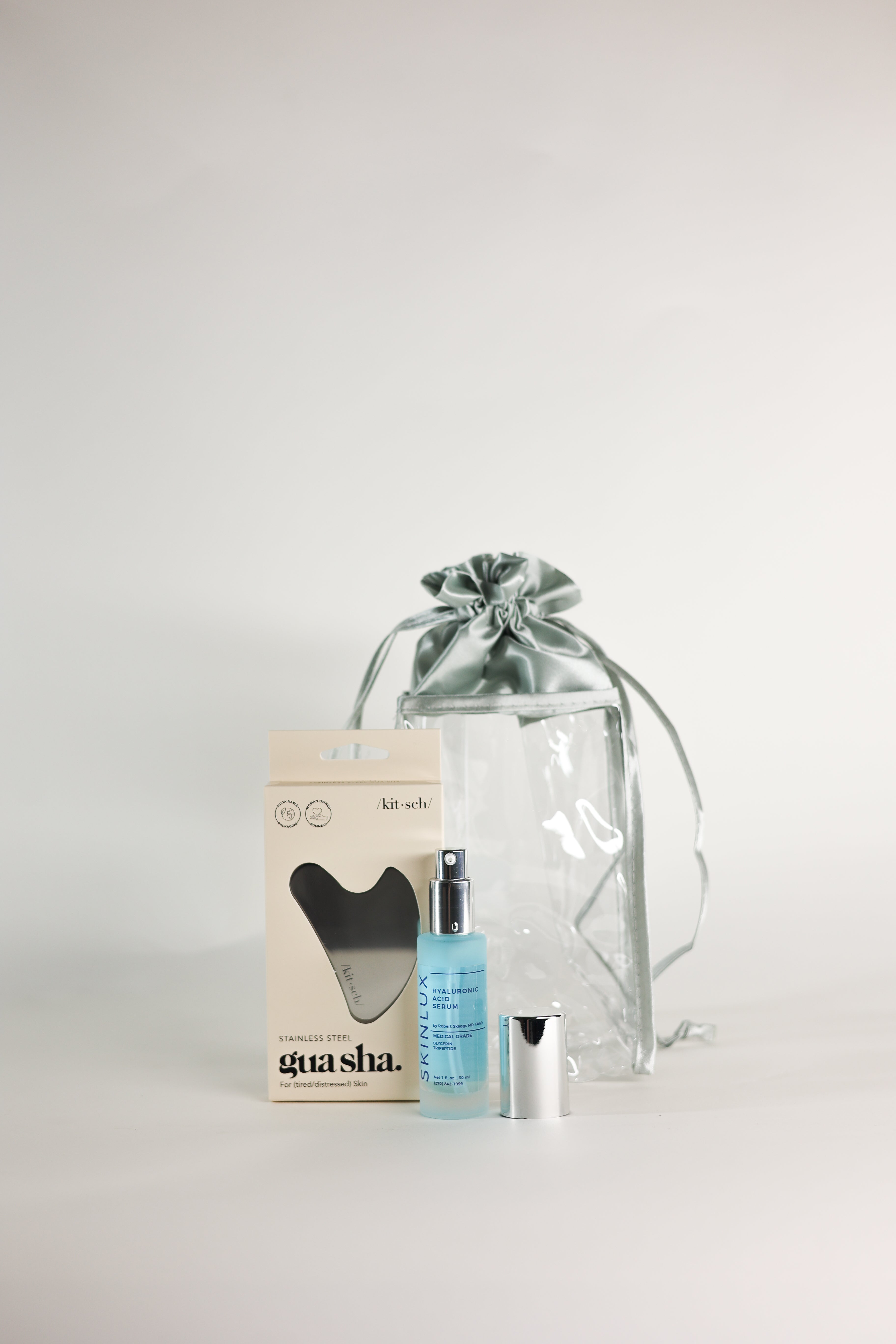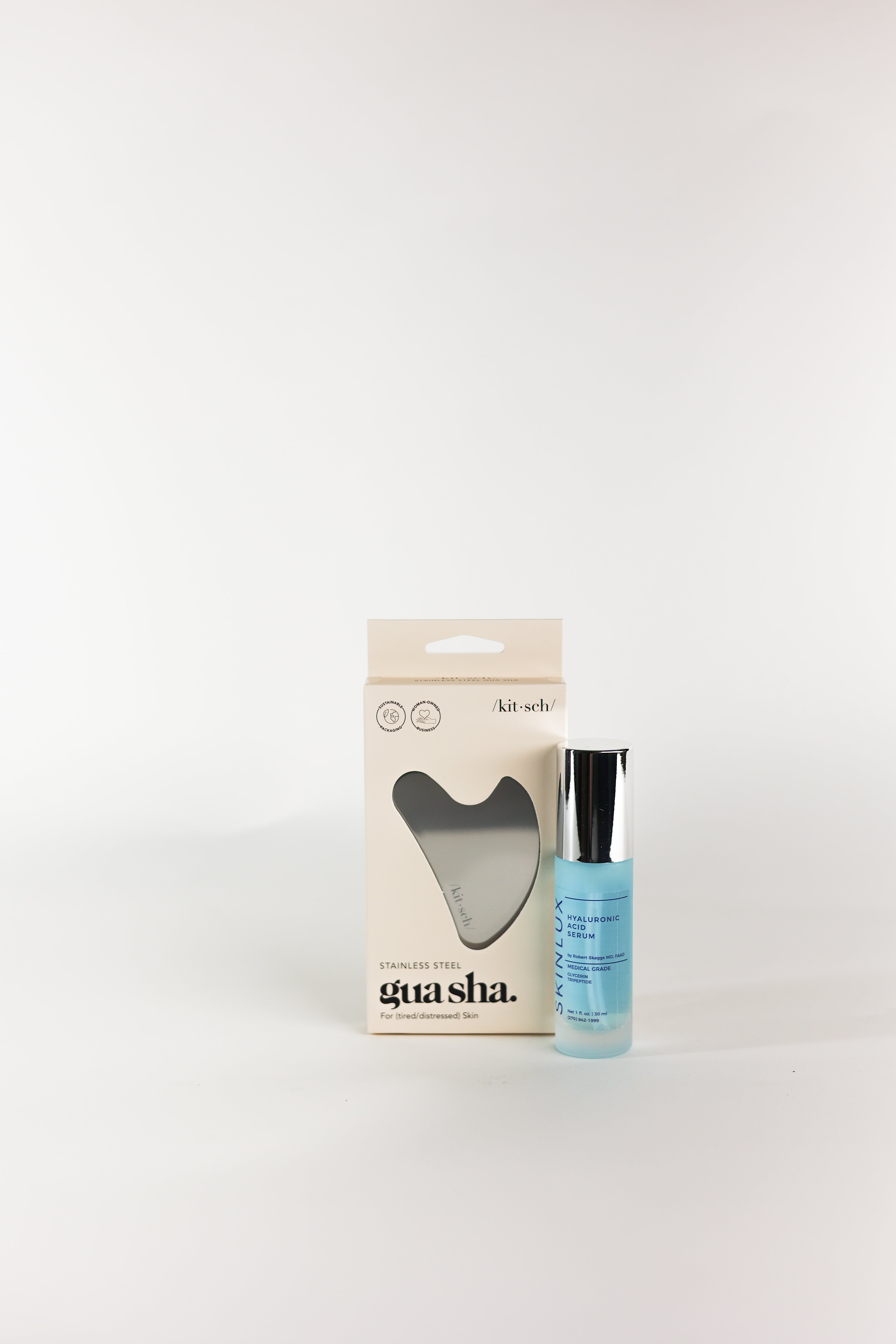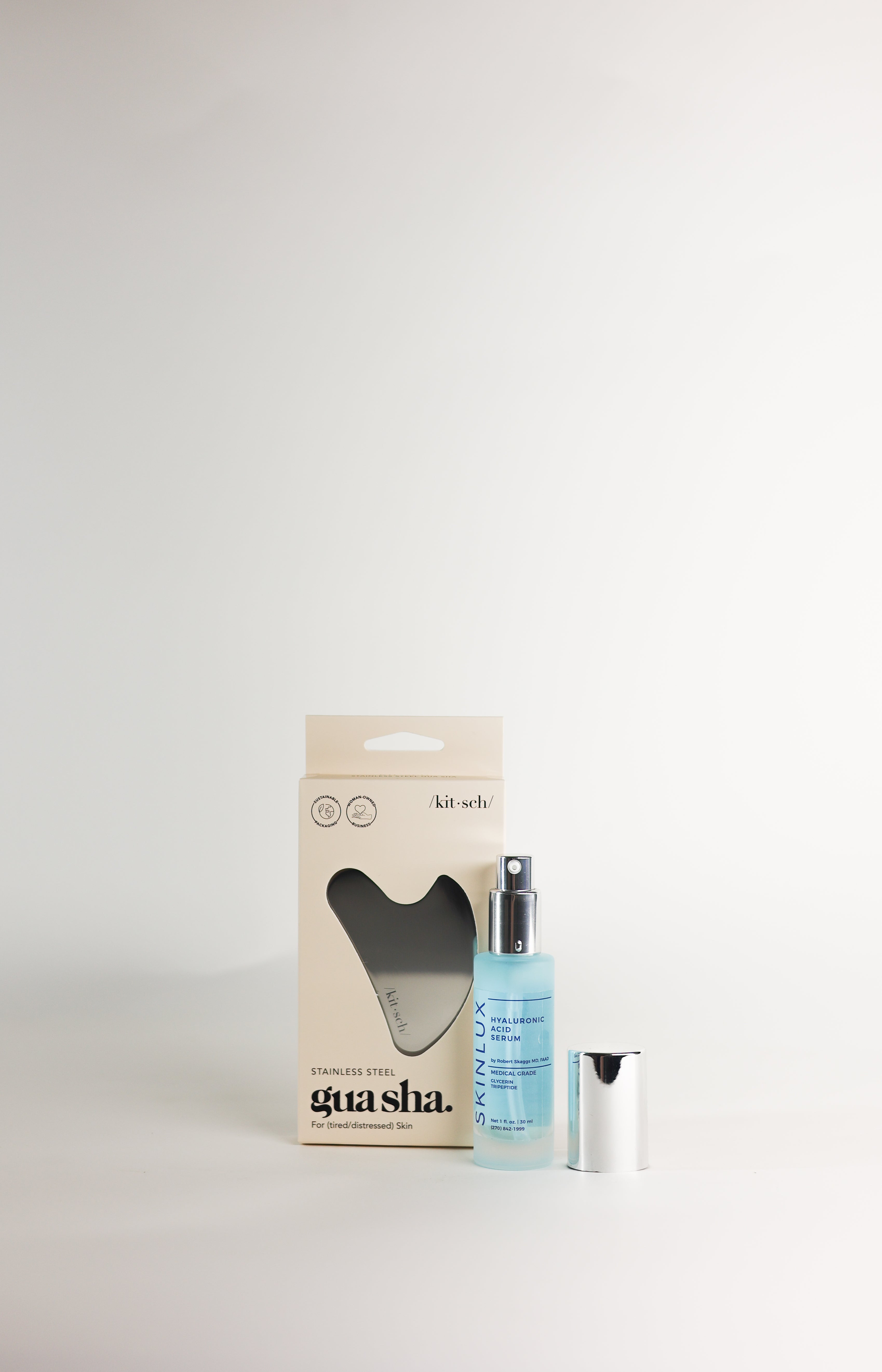 Lift, sculpt, and deeply hydrate. This two-step ritual pairs our Hyaluronic Acid Serum with a cooling gua sha tool to boost circulation, enhance definition, and leave skin looking fresh and luminous. The perfect self-care moment for glowing holiday skin.